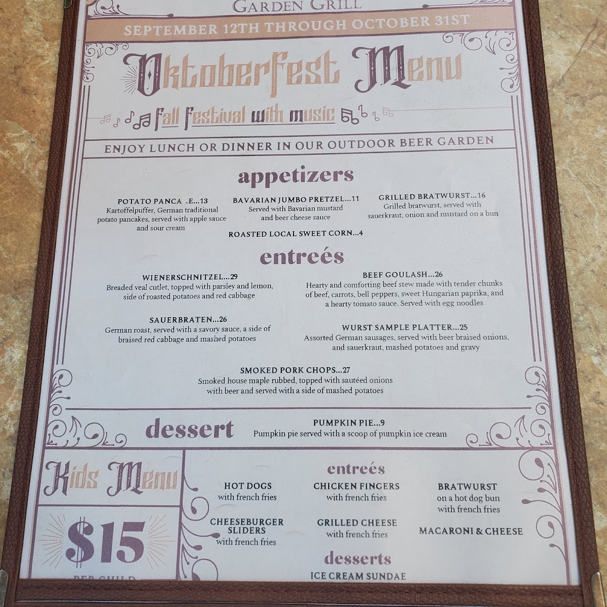Seasonal specialties, like their Oktoberfest menu, showcase the restaurant's commitment to culinary excellence. With attentive service and an inviting ambiance, Garden Grill is more than just a dining destination; it's a place where unforgettable memories are created.